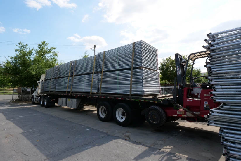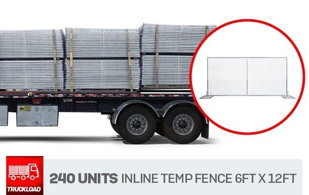 This truckload bundle with inline chain-link temporary fence panels is designed for high-volume construction sites and rental operations. This bundle includes all required components to deploy a full temporary chain-link fence system with consistent alignment, stability, and fast setup.