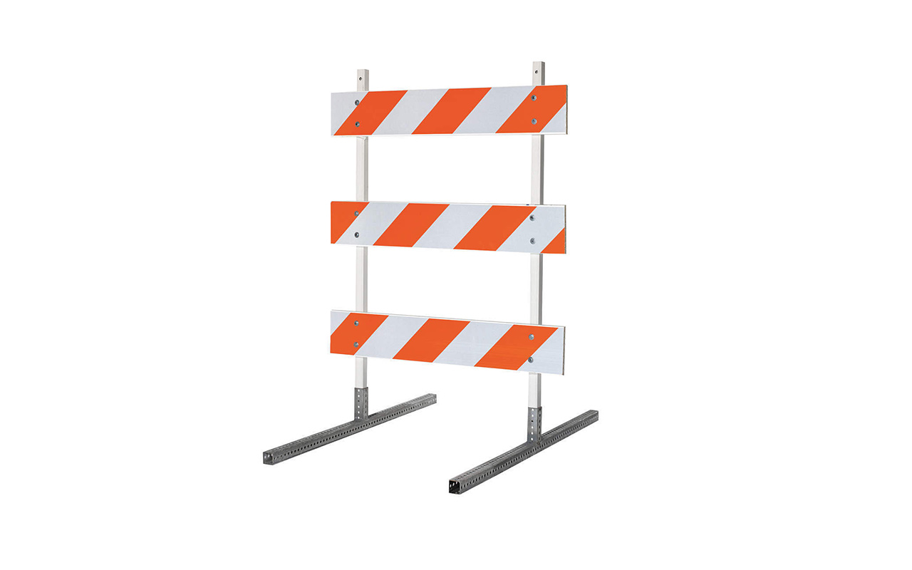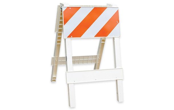 A-frame barricades are shaped like a triangular sawhorse with a reflective plank across the middle. Their wide, stable base makes them well suited for flat, even surfaces like construction sites, parking lots and pedestrian walkways.