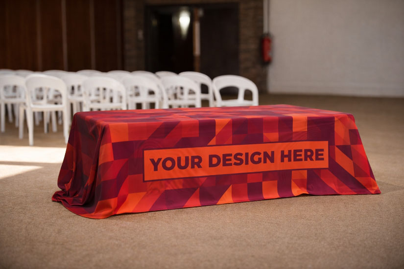 Custom printed tablecloth made for events that require fast setup and consistent presentation.