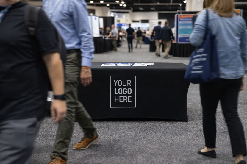 Credentialing areas, registration desks, partner activations. |