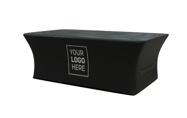 - Full-color custom printed table cover with edge-to-edge branding.