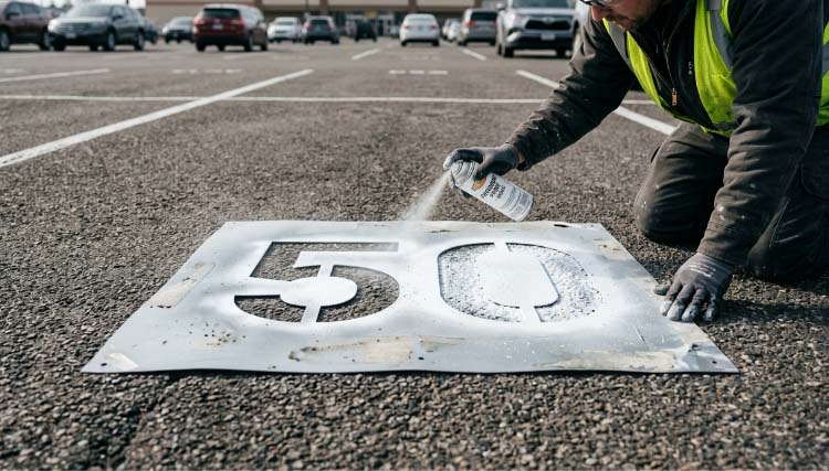 A: Parking lot stencils are used to apply letters, numbers, symbols, and directional markings onto pavement surfaces. They help create consistent markings for parking spaces, traffic flow, fire lanes, and restricted areas. Using parking stencils reduces layout time and helps maintain uniform results across the entire lot.