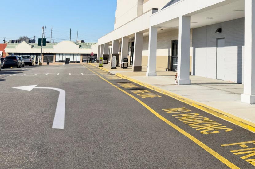 Arrow stencils, including straight and curved designs, are used to guide traffic through entrances, exits, and drive lanes. These parking lot stencils help improve flow and reduce confusion in busy or multi-lane areas. |