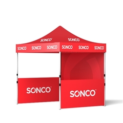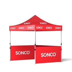 The SONCO Aluminum Event Tent is a premium-grade canopy designed for trade shows, outdoor festivals, sports events, and branded activations. Built with a reinforced hexagonal aluminum frame, custom-printed polyester canopy, and available in multiple sizes, it is a versatile solution for businesses and organizations that need high-quality event displays.