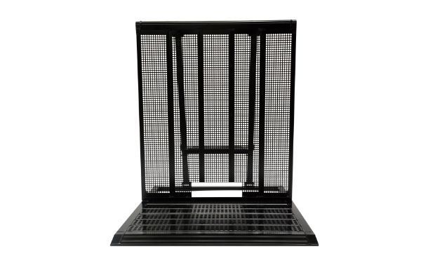 Black powder coating holds up to repeated use in outdoor or indoor settings. |