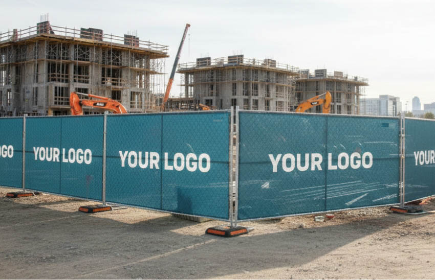 Reference to this resource when site visibility or brand presence matters alongside privacy, it shows how custom privacy screens are used to create consistent visuals across job sites without changing the fence setup itself. |